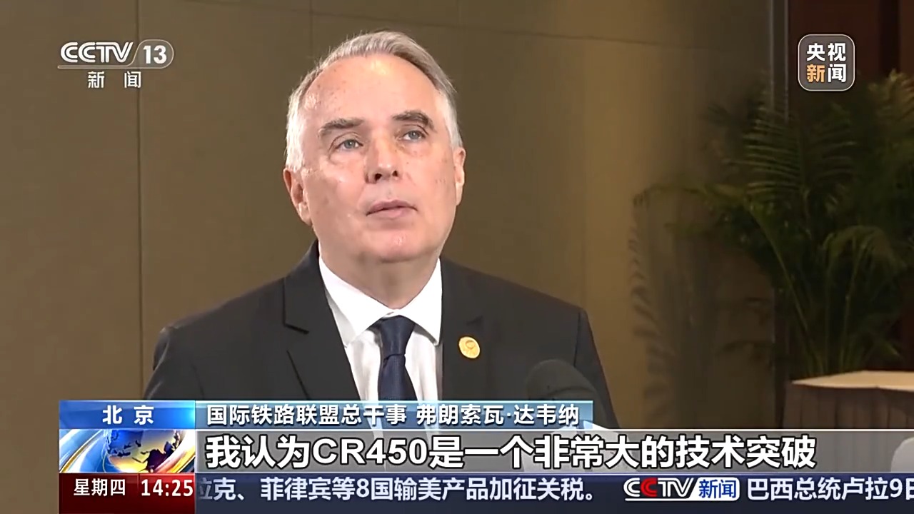 邦际铁道定约总做事弗朗索瓦·达韦纳:尔觉得CR450是1个十分年夜的技能冲破,比起日原等邦现有的技能,它告终了更下的快度升迁,使寰球下铁经营快度背前迈出了新的1年夜步。